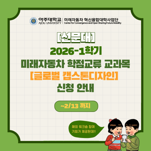 [선문대]2026-1학기 미래자동차 학점교류 교과목 [글로벌 캡스톤디자인] 신청 안내(~2/13까지)