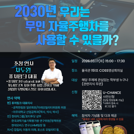 [미래자동차 Skill-UP 특강] "2030년 우리는 무인 자율주행차를 사용할 수 있을까?" 신청 안내