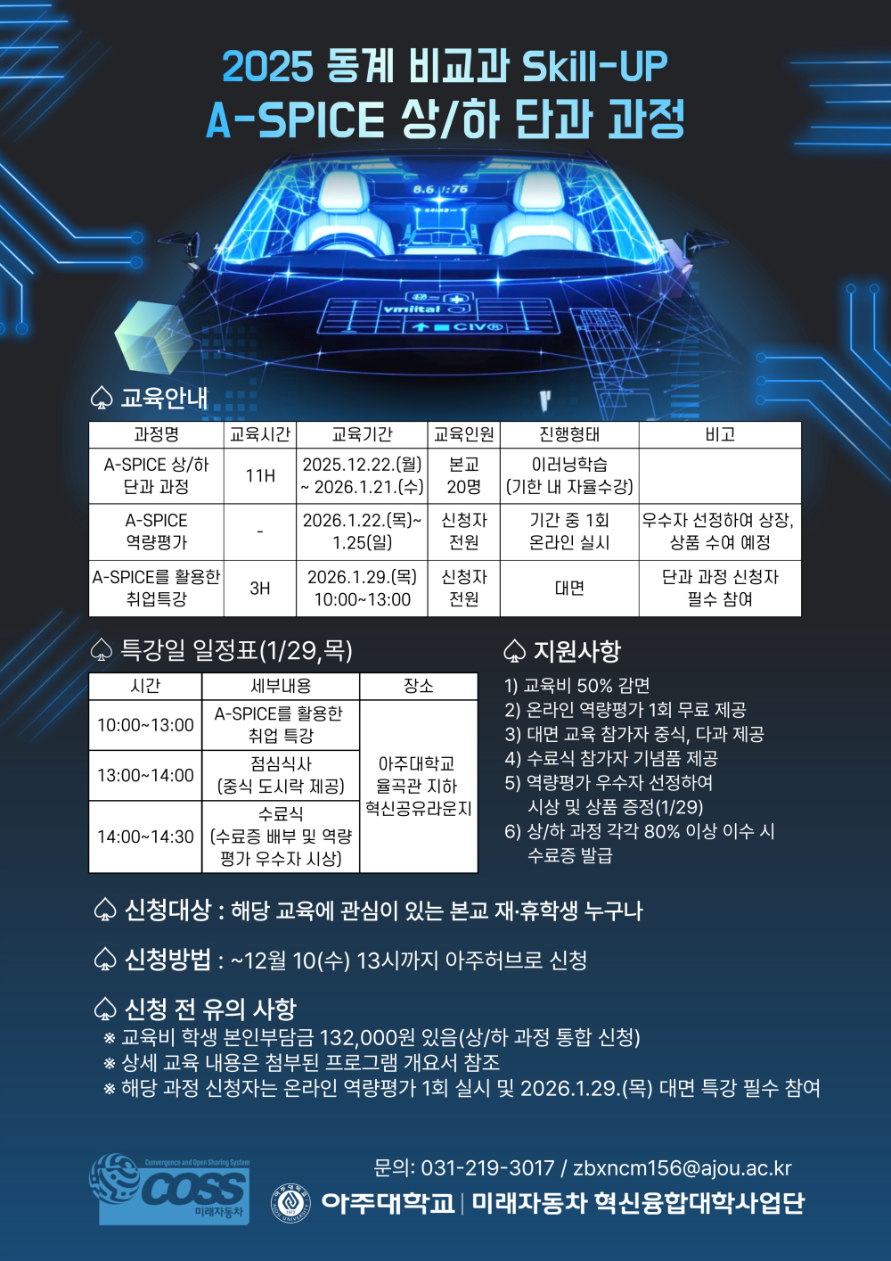 - A-SPICE를 활용한 취업특강 : 2026년 1월 29일(목) (포스터 일정 참조)