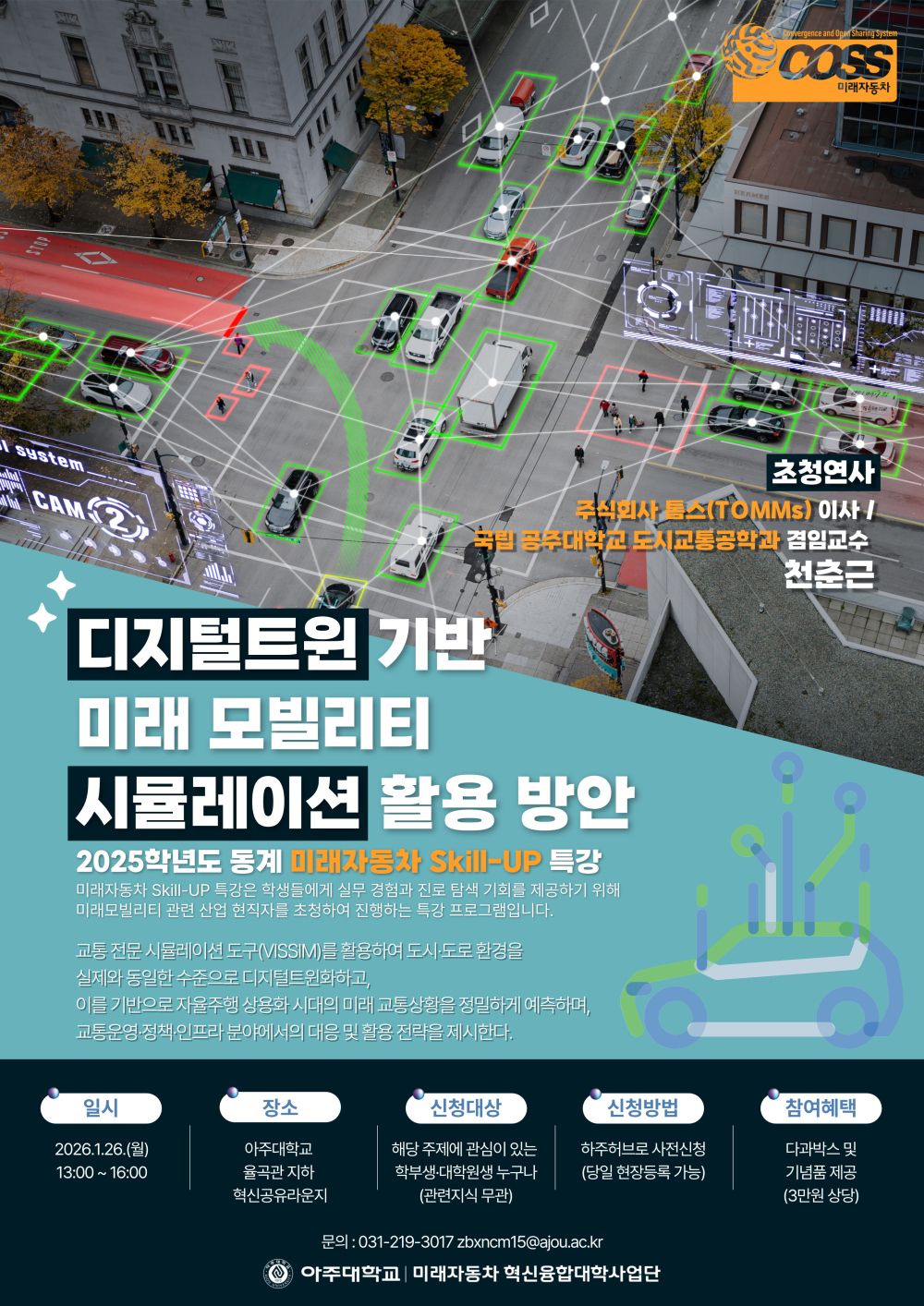 비교과 [미래자동차 Skill-UP 특강] "디지털트윈 기반 미래 모빌리티 시뮬레이션 활용방안" 신청 안내