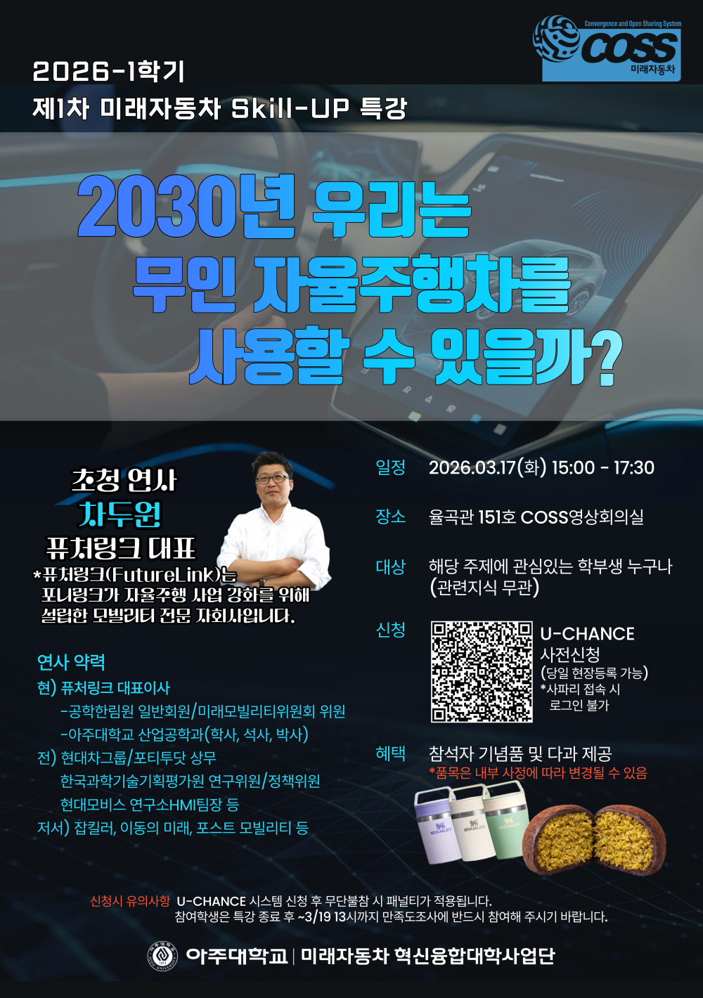 비교과 [미래자동차 Skill-UP 특강] "2030년 우리는 무인 자율주행차를 사용할 수 있을까?" 신청 안내