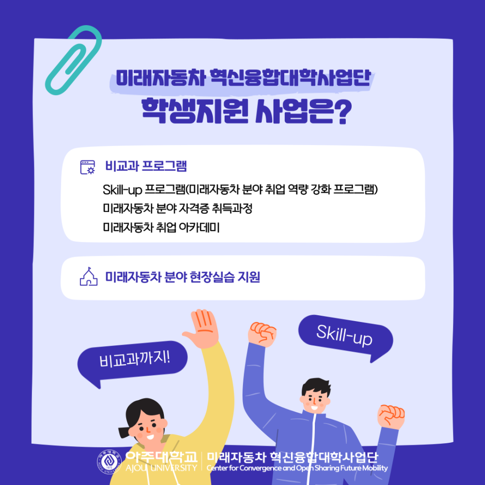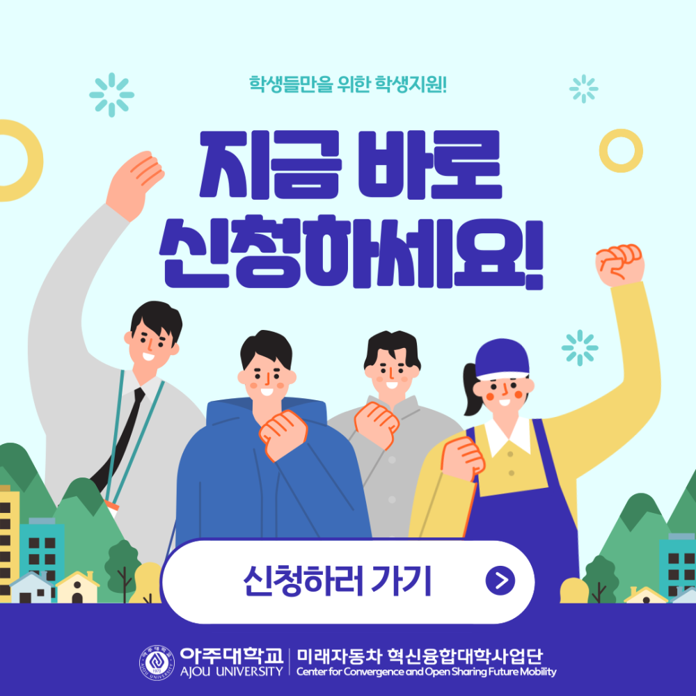 카드뉴스 혁신융합대학 사업단 지원 사업들을 알려드립니다!! 페이지 정보 작성자 미래자동차 댓글 0건 조회 110회 작성일 25-09-30 11:17 본문 목록 이전글2025학년도 1학기 장학수여식이 개최 25.10.14 다음글2025 AUTO RACE 스케일카 자율주행 경진대회를 소개합니다~!! 25.09.30 댓글목록 댓글목록 등록된 댓글이 없습니다.