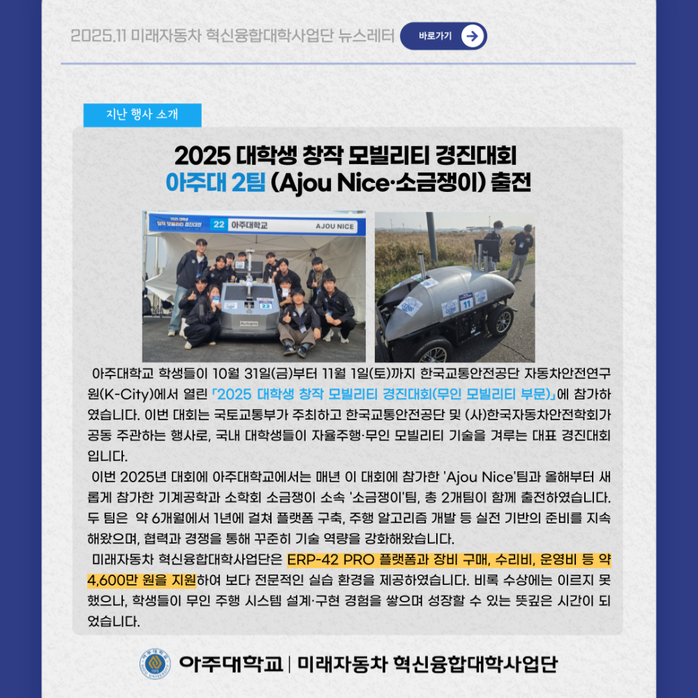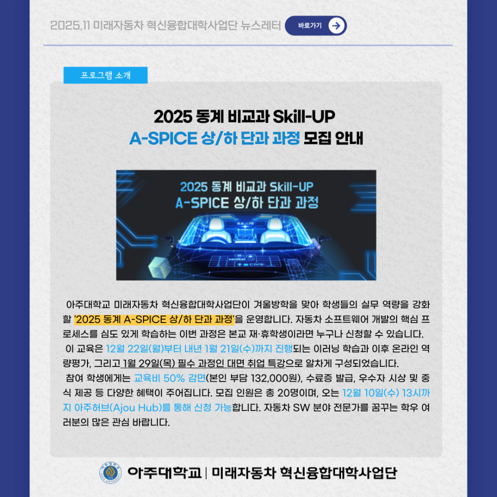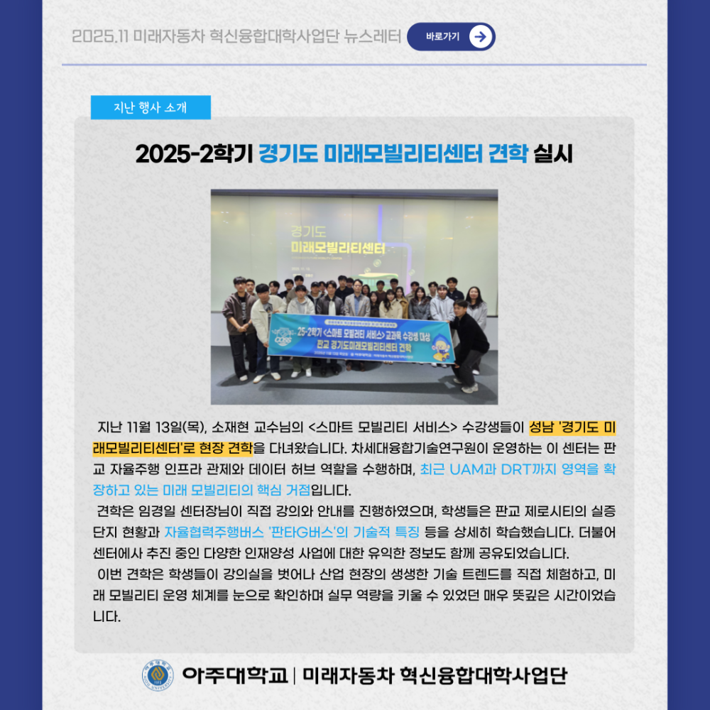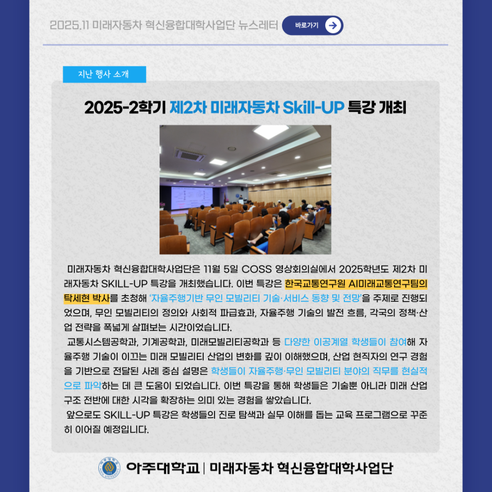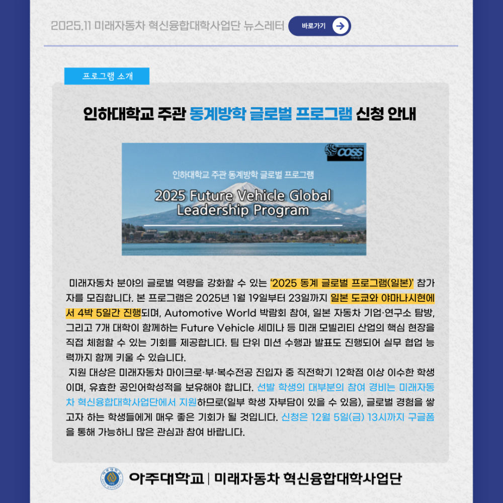 뉴스레터 2025년 11월 뉴스레터 페이지 정보 작성자 미래자동차 댓글 0건 조회 26회 작성일 25-12-02 14:44 본문 목록 다음글요즘 뜨는 미래자동차 이슈, 한눈에 보기 ! 25.11.28 댓글목록 댓글목록 등록된 댓글이 없습니다.